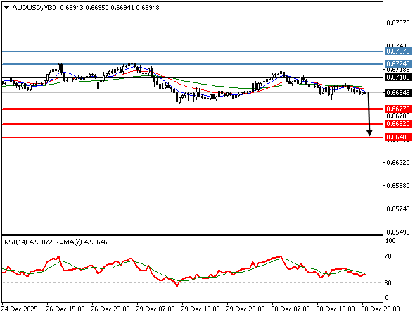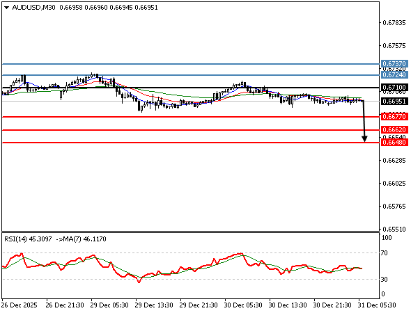 | أسترالي/دولار | 31-12-2025 04:30:00 GMT | المدى القصير | مرجح النزول ![]() | 0.6695 | 0.6677 | 0.6710 |