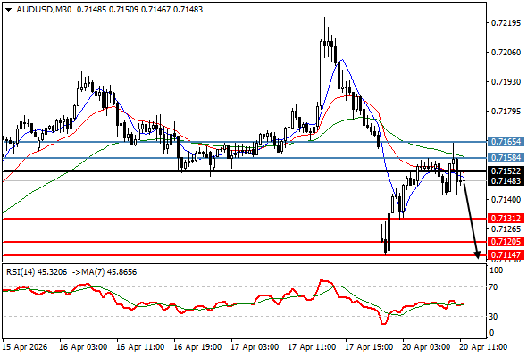 Technical View: مركز بيع قصير تحت 0.7152. الهدف 0.7131. الإحتمال البديل كسر فوق 0.7152, لفتح 0.7158.