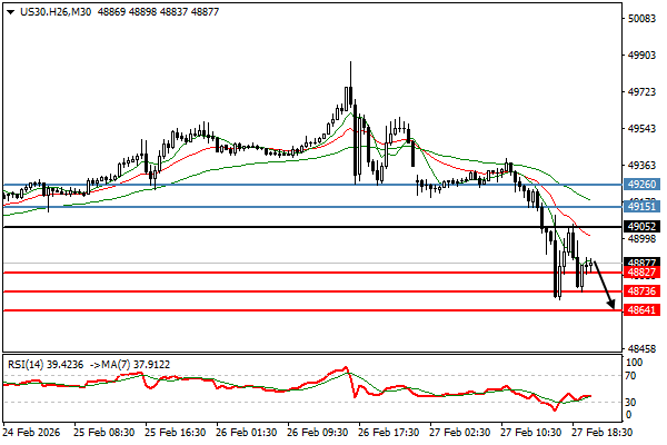 | مؤشر داو جونز | 27-02-2026 14:36:00 GMT | المدى القصير | مرجح النزول ![]() | 48971 | 48909 | 49150 |