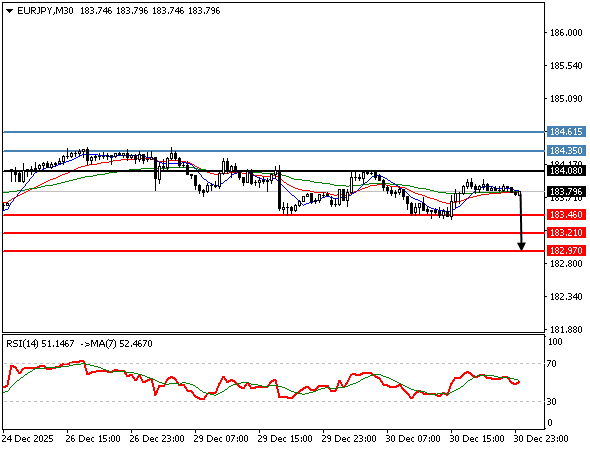 | يورو/ين | 30-12-2025 22:33:00 GMT | المدى القصير | مرجح النزول ![]() | 183.79 | 183.46 | 184.08 |