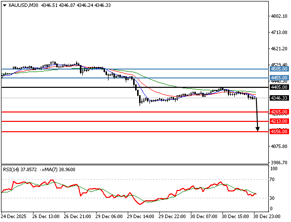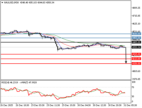 | الذهب | 31-12-2025 04:35:00 GMT | المدى القصير | مرجح النزول ![]() | 4350 | 4265 | 4405 |