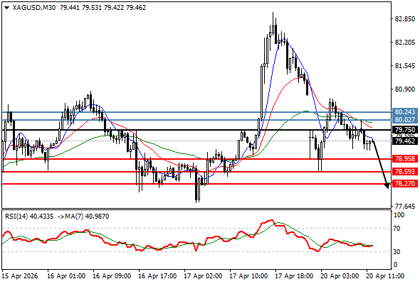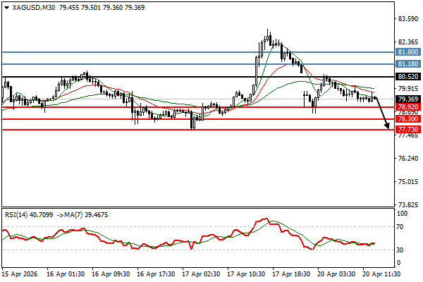 | الفضة | 20-04-2026 10:41:00 GMT | المدى القصير | مرجح النزول ![]() | 79.36 | 78.92 | 80.52 |