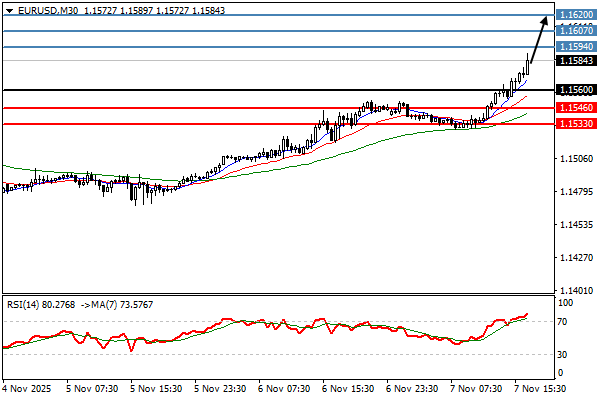 | EURUSD | 07-11-2025 09:22:00 GMT | Short Term | Upside favored ![]() | 1.1536 | 1.1520 | 1.1549 |
