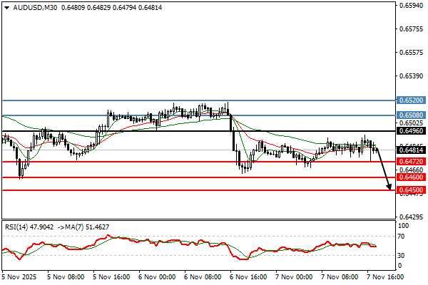 | AUDUSD | 07-11-2025 15:35:00 GMT | Short Term | Downside favored ![]() | 0.6481 | 0.6472 | 0.6496 |