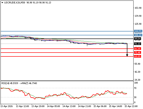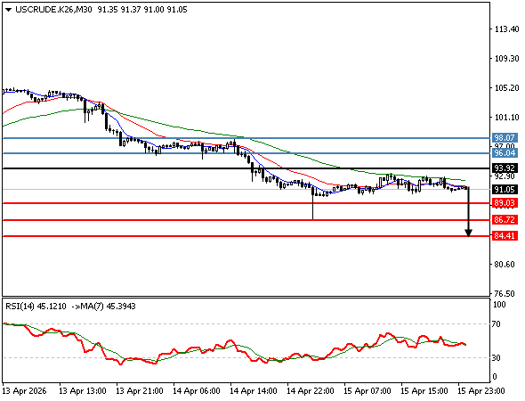 | CRUDE OIL | 15-04-2026 22:32:00 GMT | Short Term | Downside favored ![]() | 91.05 | 89.03 | 93.92 |