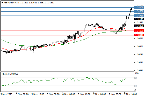 | GBPUSD | 07-11-2025 15:30:00 GMT | Short Term | Upside favored ![]() | 1.3161 | 1.3130 | 1.3175 |