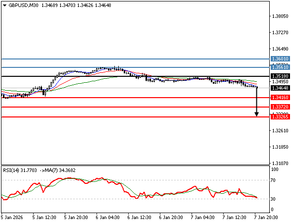 | GBPUSD | 07-01-2026 09:46:00 GMT | Short Term | Downside favored ![]() | 1.3490 | 1.3474 | 1.3520 |