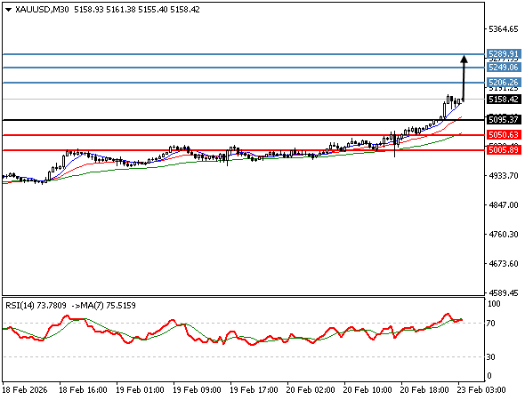 | GOLD | 20-02-2026 16:38:00 GMT | Short Term | Upside favored ![]() | 5064 | 5040 | 5081 |