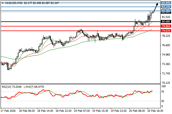 | SILVER | 20-02-2026 16:39:00 GMT | Short Term | Upside favored ![]() | 82.34 | 80.68 | 82.56 |