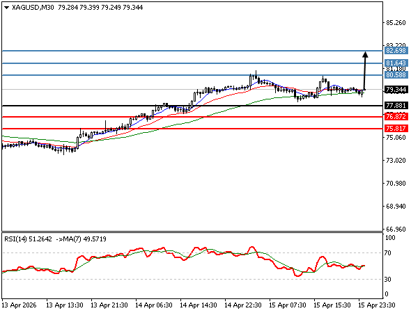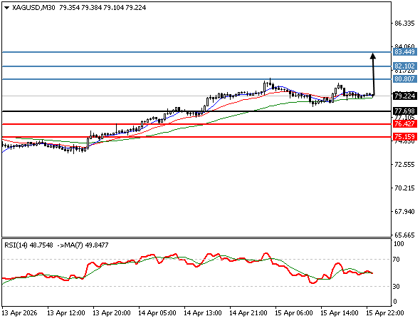 | SILVER | 15-04-2026 20:42:00 GMT | Short Term | Upside favored ![]() | 79.22 | 77.69 | 80.80 |