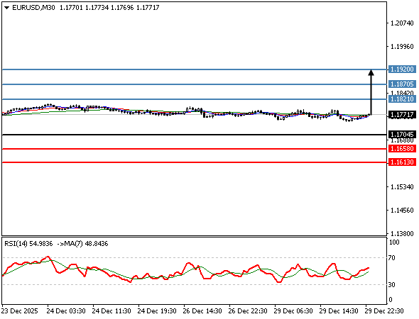 | یورو به دلار | 29-12-2025 22:20:00 GMT | کوتاه مدت | گرایش به صعود ![]() | 1.1771 | 1.1704 | 1.1821 |