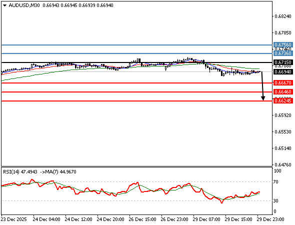 | دلار استرالیا به دلار | 29-12-2025 22:30:00 GMT | کوتاه مدت | گرایش به نزول ![]() | 0.6694 | 0.6667 | 0.6715 |