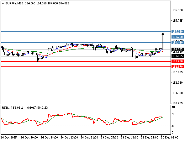 | یورو به ین | 30-12-2025 04:33:00 GMT | کوتاه مدت | گرایش به صعود ![]() | 184.02 | 183.60 | 184.41 |