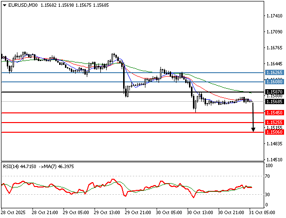 | یورو به دلار | 31-10-2025 04:20:00 GMT | کوتاه مدت | گرایش به نزول  | 1.1568 | 1.1545 | 1.1587 |