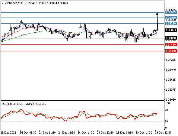 | پوند به دلار | 30-12-2025 04:23:00 GMT | کوتاه مدت | گرایش به صعود ![]() | 1.3506 | 1.3484 | 1.3525 |