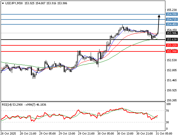 | دلار به ین | 31-10-2025 04:25:00 GMT | کوتاه مدت | گرایش به صعود  | 153.98 | 153.63 | 154.45 |