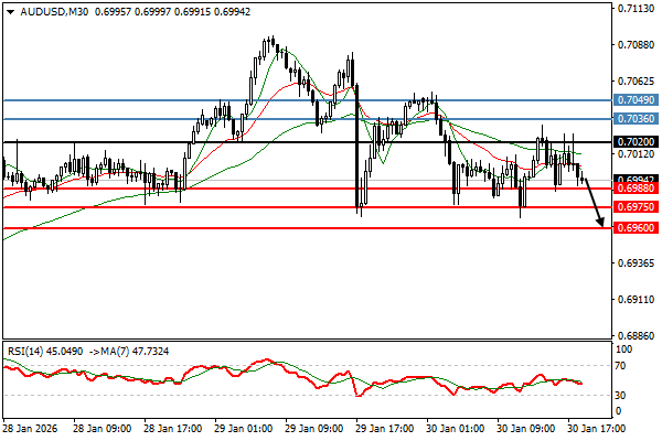 Technical View: 看跌需突破 0.702. 目标 0.6988. 相反,突破 上方 0.702, 将打开 0.7036.