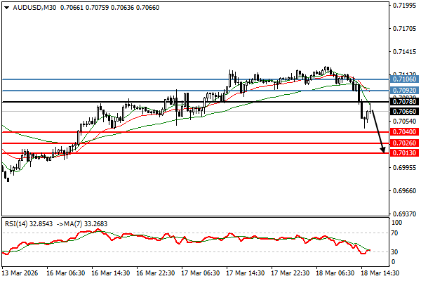 | 澳美 | 18-03-2026 14:23:00 GMT | 短线 | 看跌 ![]() | 0.7066 | 0.7040 | 0.7078 |