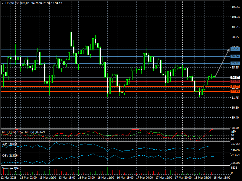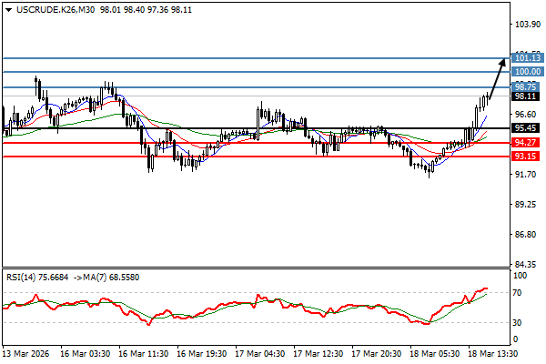 | 原油 | 18-03-2026 10:59:00 GMT | 短线 | 看涨 ![]() | 94.17 | 93.65 | 95.82 |