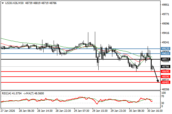 | 道琼斯 | 30-01-2026 01:15:00 GMT | 短线 | 看跌 ![]() | 49045 | 48951 | 49164 |