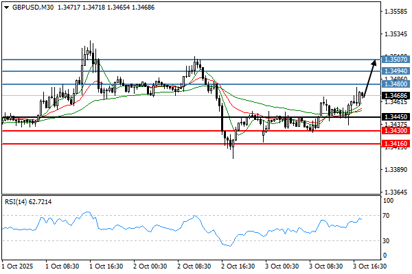 镑美 | 03-10-2025 15:15:00 GMT | 短线 | 看涨 ![]() | 1.3468 | 1.3445 | 1.3480 |