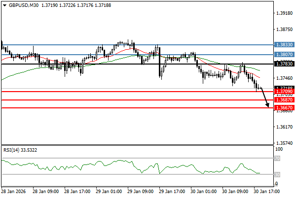 | 镑美 | 30-01-2026 09:57:00 GMT | 短线 | 看跌 ![]() | 1.3727 | 1.3709 | 1.3783 |